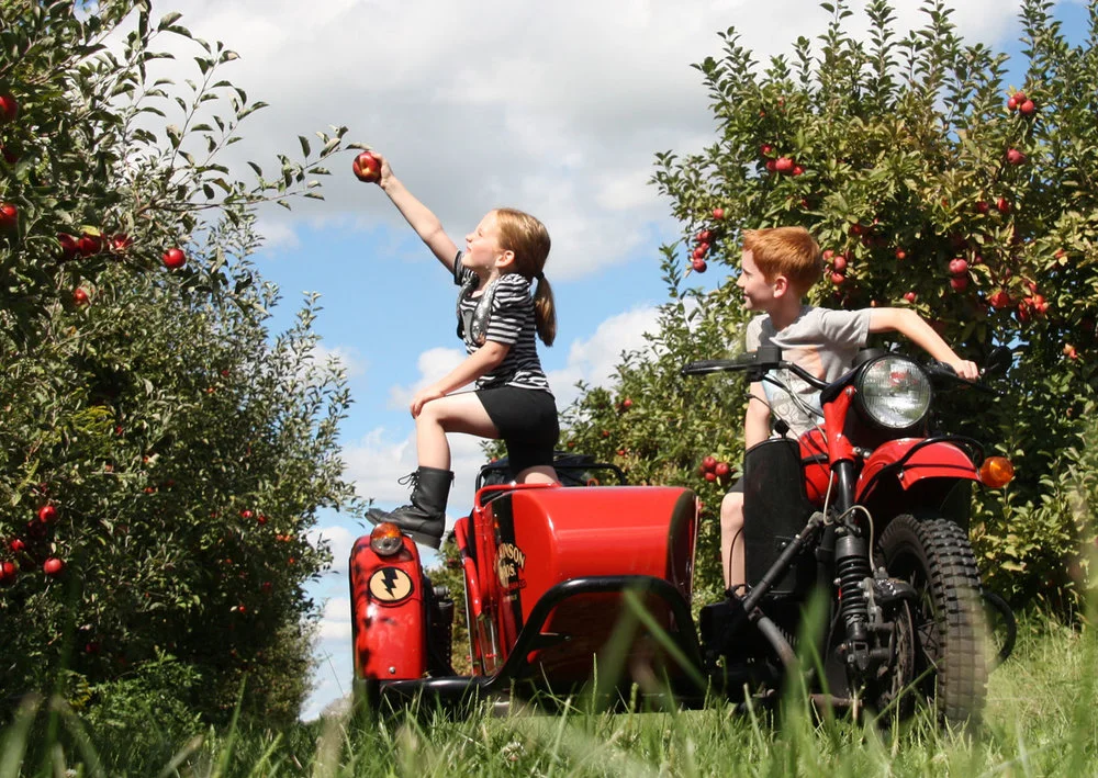 Ural motorcycles are a part of everyday life for the Wilkinson kids seen here and at the apple orchard above. The Wilkinson bros have raised their kids around these vehicles making the question, "can we take the Ural?" a very frequent request in both households!